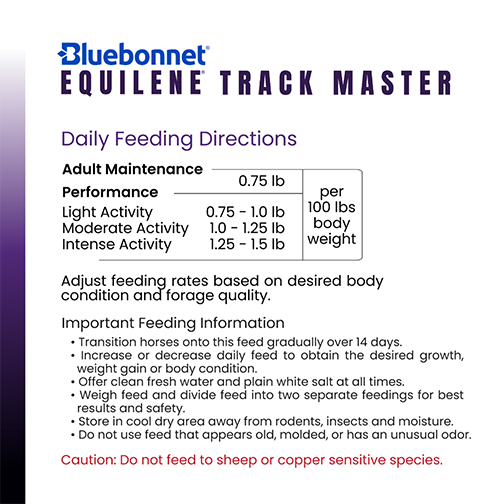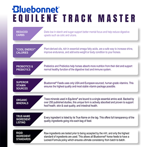 Categories Bluebonnet Feed, Equilene® Track Master® Ultra Fat, Horse Feed, Horses