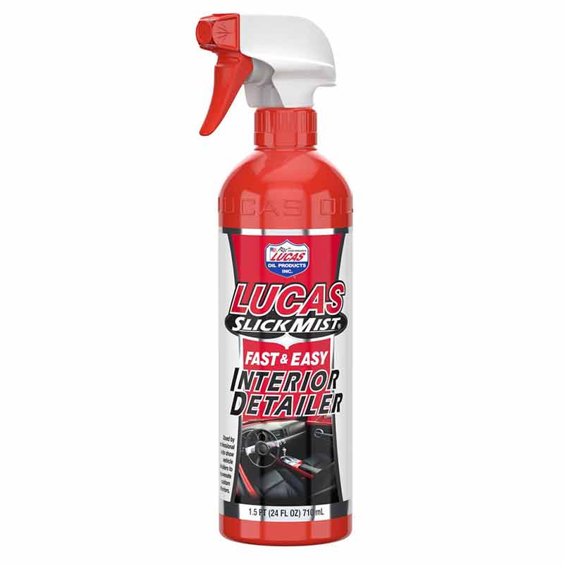 Lucas Slick Mist® Interior Detailer is a spray treatment exclusively formulated by Lucas Oil Products designed to clean and protect like nothing you’ve ever used. Spray as needed onto interior surfaces such as plastic, vinyl, leather, rubber and metal for a “like-new” look. Cleans and protects, dashboards, consoles, doors and trim. Also works great on household furniture.