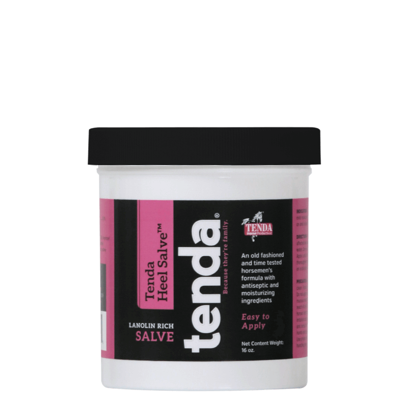 An old fashioned and time tested horsemen’s formula for the prevention and treatment of cracked heels. Rich in Lanolin this salve is easy to apply and will not burn or blister. Mild antiseptic properties aid in the healing of existing scratches and scrapes. Tenda Heel Salve™ is suitable for all classes of horses and will not test.